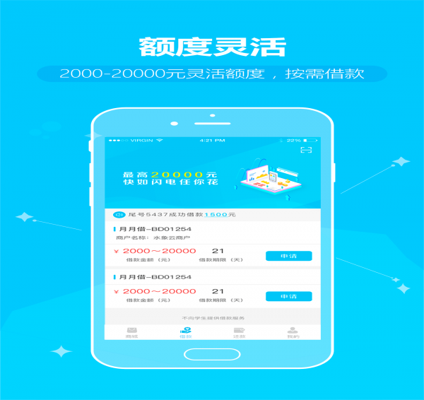 额度灵活:1000-10000元灵活额度,按需借款,满足您的资金需求;