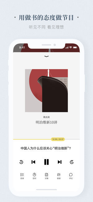 提供一系列阅读、思考和审美能力的长期养成方案。我们邀请到了至为优秀的知识摆渡人与与您一路同行。首期上线的就有杨照的《中国经典导读》、以及焦元溥的《一听就懂的古典音乐史》。