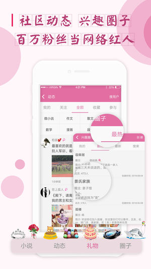 8,支持关注、粉丝、发布动态等社区功能,可以支持和关注自己喜欢的作者,和作者互动、催更