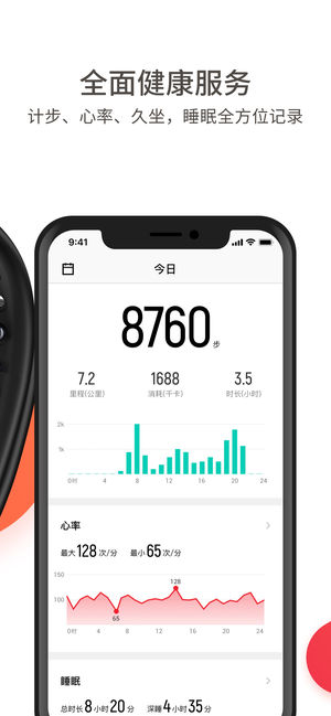 通过手环可参与丰富的计步活动赢取红包,查看睡眠数据、设置闹钟等。