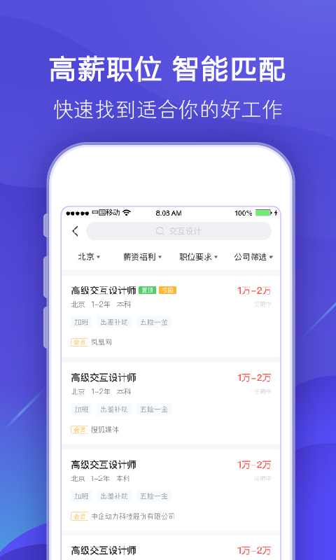 【附近职位】搜索结果页可查看附近职位,找到离你最近的好工作;
