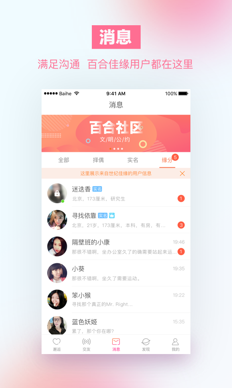 百合婚恋app是一款实名制恋爱软件,百合婚恋app由百合网推出,百合网相信大家都非常熟悉了,通过百合婚恋app能让你遇到那个对的人,小编也只是默默的祈祷,那谁,你快点来啊。