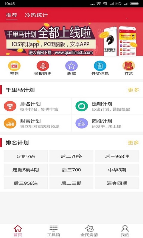 4、财富计划:该计划只针对重庆预测,人工计划一共70套,计划玩法齐全多样。