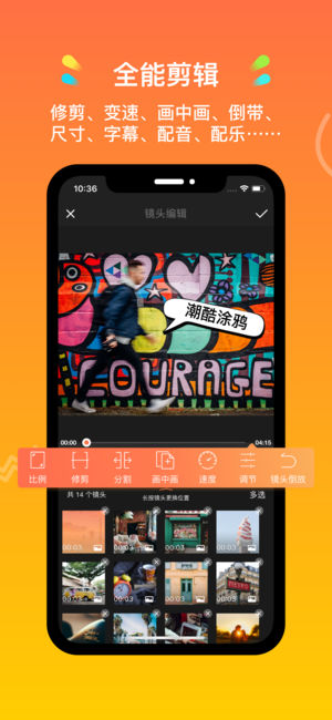 - 视频剪切、拼接、快/慢调速、复制、配音配乐等大师级功能;