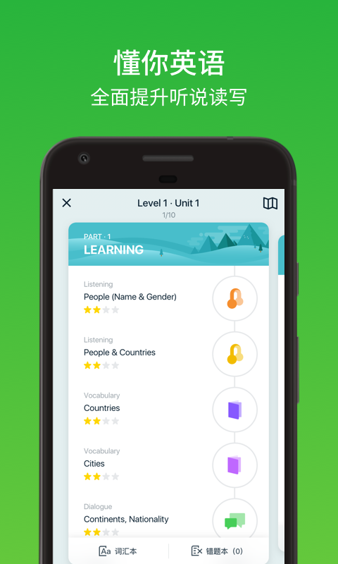 根据你的英语水平量身定制系统化课程,不背单词,不学语法,也能全面提升听说读写。
