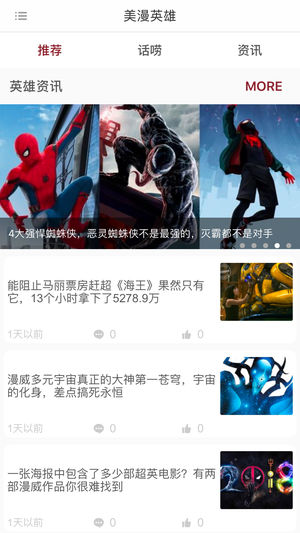 漫画社区是漫威粉是社区推出的第一个内容聚合应用。我们致力提供最全科幻类、动作类、推理类、灵异类,漫威内容,集合国内外有影响力的漫画及漫画周边内容。