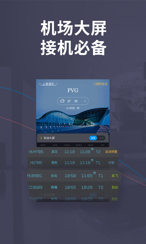 轻松掌控您的飞行时间。您可以查看中国所有航班的实时状态信息。提前了解影响航班准点的各种情况,实时获得航班的起飞、到达、延误、取消、返航、备降信息。