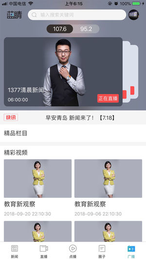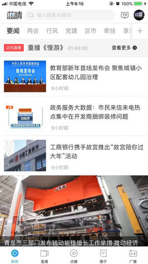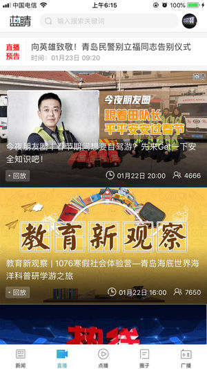 蓝睛,青岛广播电视台的官方客户端,以直播为核心,视频新闻首发为特色,内容采集于青岛市广播电视台所有内容产品。