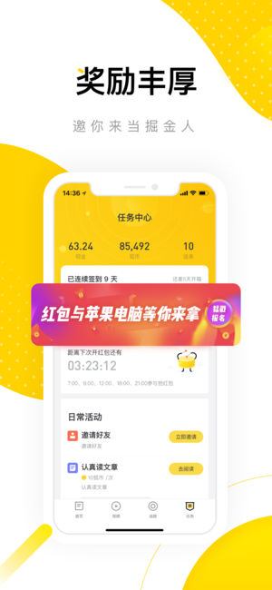 -任务中心:丰富的任务中心,阅读,看推送,分享都能获得狐币!邀请好友一起玩让你收益不停,赚到手软!新用户1元即可提现,狐币秒变人民币!