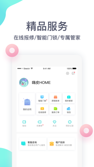 3.尊享租客服务:专属管家、日常保洁、在线预约维修、智能门锁一应俱全;