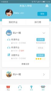 学生可以在线完成作业,实时接收作业反馈,还可以进行听读口语练习;更有多种多样的课程、绘本资源以及趣味实用的英语短文来丰富孩子们的英语学习的一款APP。软件包括四大模块:作业、自学、发现、我的。