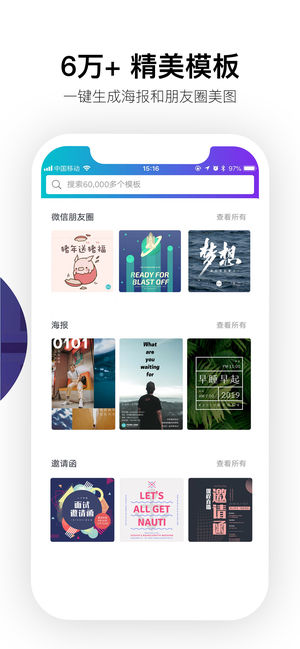 Canva安卓版是一款可以让你随时随地更快制作精美设计的应用软件,拥有Canva app之后你无需有设计经验,也不需要安装复杂的设计软件,只需几分钟你就能设计出你想要的精美设计,用于你的桌面、海报、照片等用途,Canva安卓版操作非常的简单,使用于每一个人,适用于生活当中各方面的设计,Canva app让你可以随时随地制作、编辑和分享自己的设计作品。