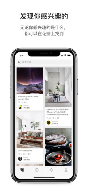 - 发现你感兴趣的事物,设计,家居,美食……无论你感兴趣的是什么,都可以在花瓣上找到。