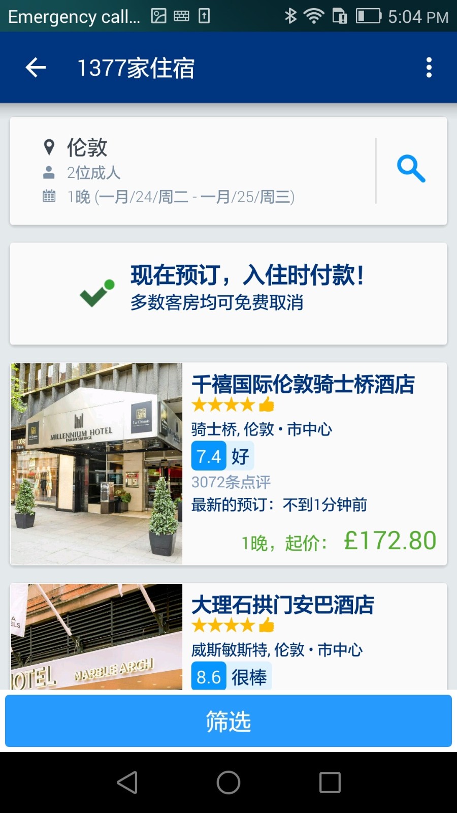 - 使用筛选功能更精确地搜索:设置价格区间、选择某一区域、特定设施服务(如免费无线网络和允许携带宠物入住的酒店)等等。