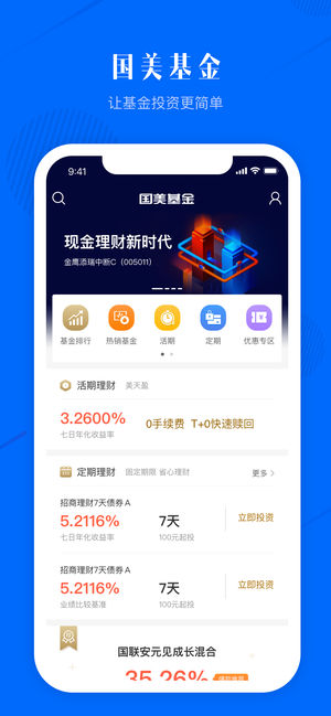 国美金融app是一个由国美金融官方推出的综合性理财服务平台,国美金融app平台致力为个人和企业提供定制化财富管理服务,成就金融打造品质生活的平台愿景。