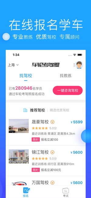 1、流程全面:覆盖考驾照整个流程,报名->科目一->科目二->科目三->科目四->领驾照->新手上路