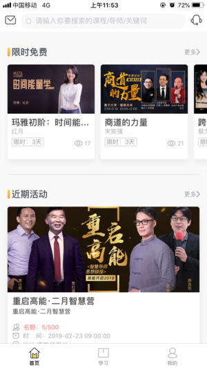 2、你可以在【学习】查看和学习课程内容。