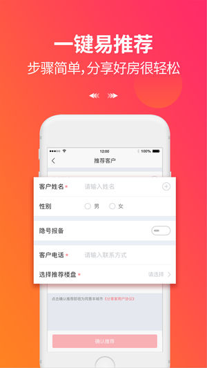 万科分享家app是一个一键式好房分享平台,万科分享家app是一款有生命力的全民营销产品,通过万科分享家app注册成为万科经纪人,不仅可以获得万科真实全面的优质房源信息,分享家通过系统化地将楼盘信息详情、户型详情、推荐理由等进行整合,让用户能够实现将万科项目一键分享给客户。