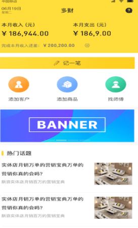 多财app是一款专为商户、店长、老板打造,集员工管理、客户管理、记账管理、商品管理,找师傅等功能于一体,多财app连接售前售中售后一体化的轻量级经营分析记账APP,多财app适用行业场景众多,是大家生意场上的智能小助手。