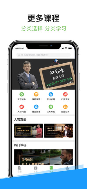 企课网app拥有一支由研发、教学、运营、销售、管理等各类专业人才所组成的精英团队。课程内容研发以帮助企业人才培养、效率提升、利润增长为核心,4个板块,21个系列,近2000多位专业导师、实战型企业家、互联网专家、各领域专业师资为企业输出内容。