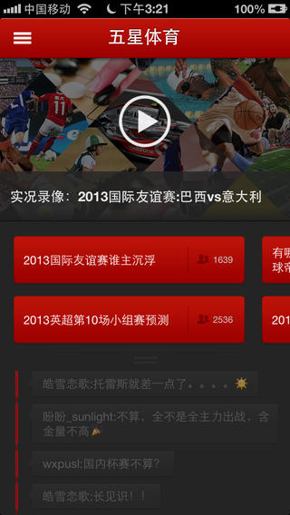 五星体育直播app是一款手机体育赛事直播软件。软件提供各种热门赛事的高清在线直播,根据用户的喜好,个性化推荐相关优质资讯,非常实用。喜欢的朋友快来下载吧!