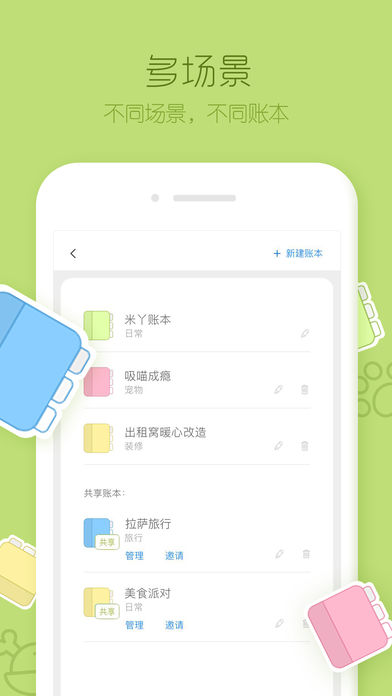 *多账本记录:日常账、装修账、结婚账多情景账本同时管理,满足你的生活需求。