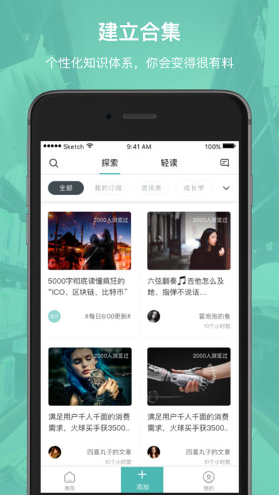 根据兴趣订阅想看的内容,系统将智能推荐给你新潮、火爆、有深度的相关好文;
