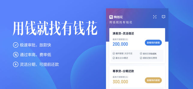 《百度有钱花》是一个非常是实用的在线金融借贷服务平台、在这里你可以进行一场简单的金融借贷服务、从而解决自己的资金问题、轻松买到自己想买的东西、百度有钱花采用的是线下非常常见的信用借贷模式、让你的借贷更简单!