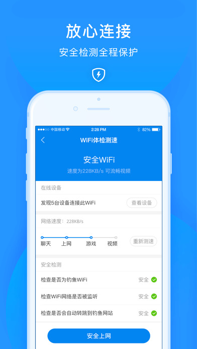 用户上网安全是我们的产品生命线,为保证用户使用WiFi万能钥匙上网安全,我们开发了安全隧道保护系统,对用户上网中的信息传输进行加密,保证用户隐私安全。