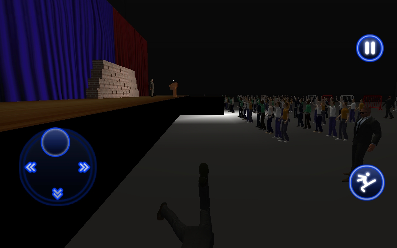1、从目标杀手拯救总统转储并保存你的任务为下一个级别,通过跳跃并将他扔出子弹范围来拯救总统。
