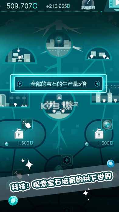 ▲科技:纵横深入的树下世界,各种辅助宝石产出的高科技,等待你的开发。