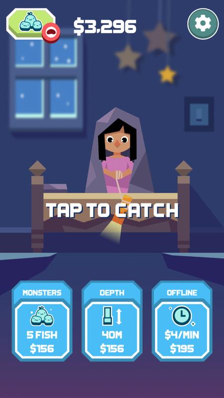 你的床下有怪物!帮助从你床下的维度捕捉怪物。当你探索激动人心的新怪物的深度时,升级你的手电筒以进一步发展并抓住更多。你能走多远? 你会抓到什么奇怪的新怪物?在床上使用钓鱼杆利用手电筒做吊钩来进行钓鱼,在床上将床下怪物全部掉出来,将获得的怪物收藏起来,成为一个怪物收藏家。