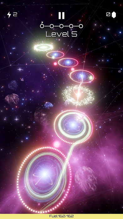 2119年,人类成功研制出可通过进入不同星球引力轨道而获得能量的超光速飞行器,并启动“流浪太空“计划,探索以前未能到达的宇宙空间。外太空即美丽又神秘,还处处充满危机。飞行器需要看准时机,在燃料耗尽或坠毁在星球之前快速到达另一个星球,有时还得小心避开障碍物。技巧和运气都是缺一不可。流浪太空计划究竟能走多远,在遥远的外太空能发现什么?一切都等着你来揭晓。准备好了吗?来一场惊险刺激的奇幻太空之旅吧!