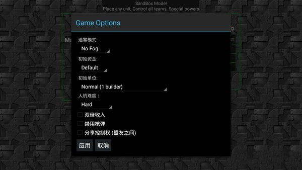 在原作的基础上增加了新的地图,策略性还挺高的。自带“沙盒编辑器”,可以在42张自带图里,自定义迷雾、资金、单位,还有人机难度,可勾选双倍收入、禁用核弹、分享控制权等等默认三个人机,也可以自行添加额外的人机。