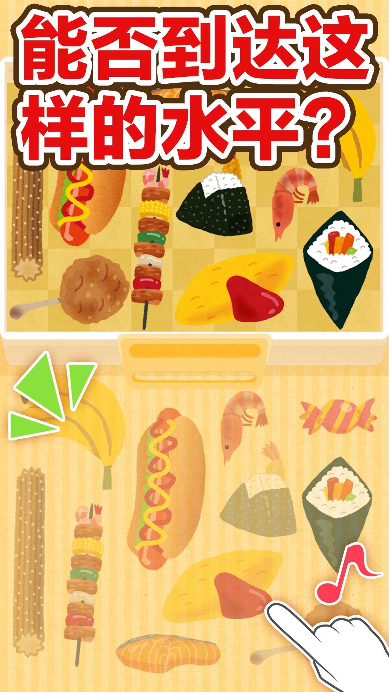 游戏是摆放类的 把各种美食放到小饭盒里就可以过关了游戏的话我觉得不是我这个年龄玩的 只要有时间 通关不成问题。