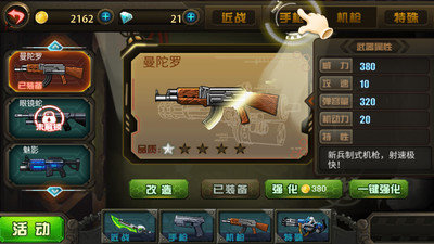 1、这款游戏采用十分简洁游戏画面,还有非常多精致的武器可以供玩家来选择;