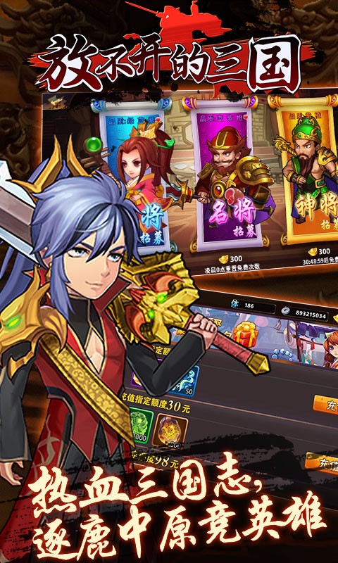 《放不开的三国BT》游戏为玩家带来精致的原创Q萌三国武将,玩家可以自由选择,培养,除了丰富的剧情副本之外,竞技场开启后,尽快去提高名次,竞技场一次性的奖励非常好的,一定要尽快拿到。