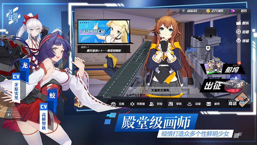 数百艘知名舰姬整装待命,高傲倔强的俾斯麦、温柔贤惠的赤城、可爱萝莉的大青花鱼、元气满满的宁海等小姐姐们,等候提督大人的调遣。