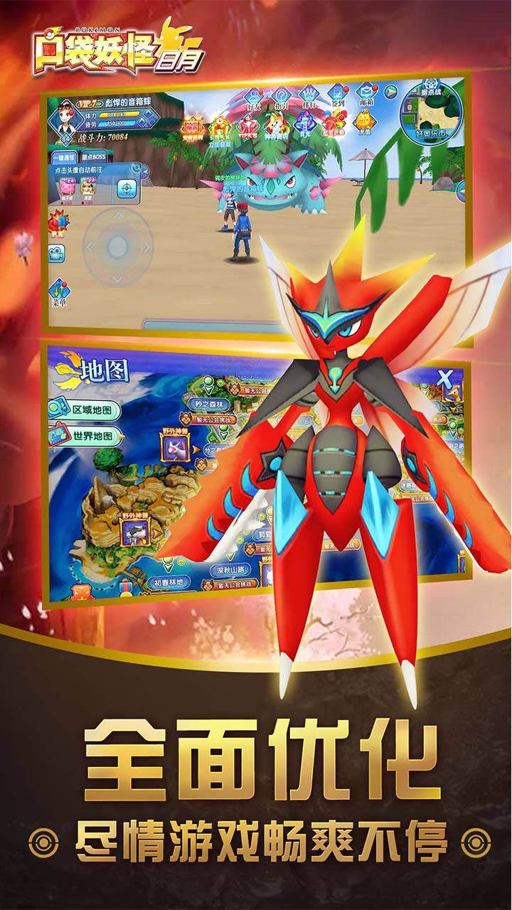口袋妖怪日月手游超高清的游戏画质,还有360°视觉任你换,游戏内容丰富,人物设计精致,玩法多样,你可以捕捉神兽,还有更多的口袋妖怪可供玩家选择,快来跟你的妖怪一起战斗吧!