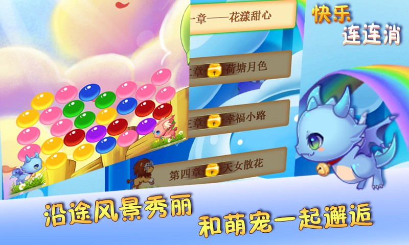 快乐连连消游戏是一款经典的手机休闲消除手游,玩法轻松简单有趣,游戏画面高清精致,还有海量丰富的关卡可以挑战,在这里还会出现各种可爱萌萌哒的宠物帮助玩家一起冒险哦,在快乐中舞动你的手指,喜欢的快来下载吧!