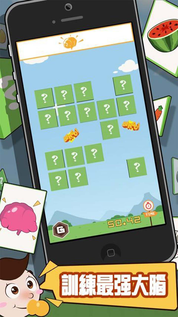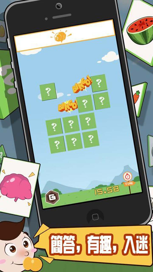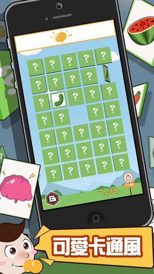 小黄人翻牌""是一款有趣清新免费的记忆训练游戏。Come On!一起来做大脑训练操! 可爱小动物,清新绿蔬菜以及神秘生物来袭,帮您开发强大脑。无论你是不是记忆高手,无论你是不是能过目不忘,“天天翻牌训练营”都可以给您带来无尽的欢乐。每天来一场大脑训练,提升等级,获得更高级的称号,操作简便,点击屏幕翻开卡牌,尝试用短的时间完成所有卡牌的匹配,开始训练吧!