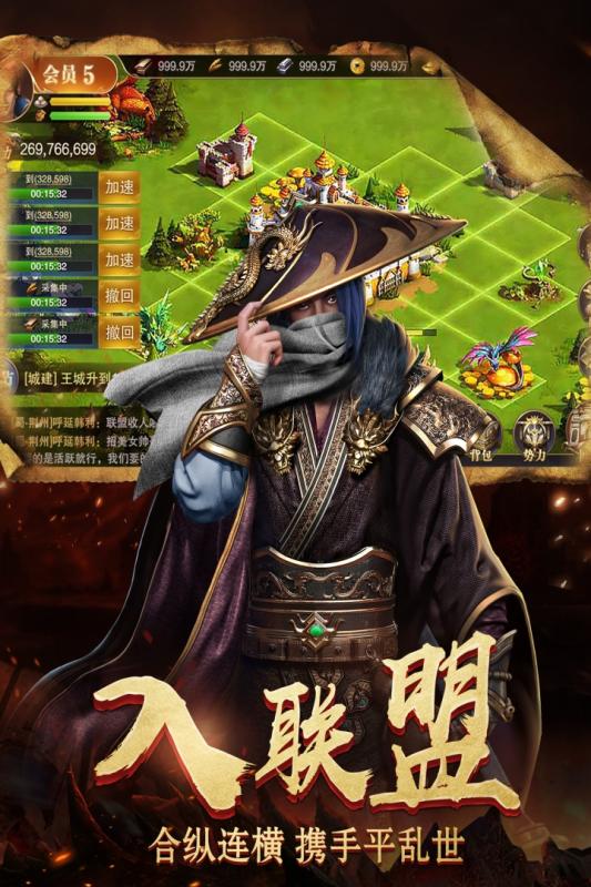 2、策略性玩法模式,各种武将军师合理搭配,组成最强阵容,挑战最强大脑。