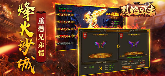 烈焰霸者是一款经典的复古类传奇竞技热血对战手游,游戏里最经典复古的操作玩法和自由的战斗模式,高清的地图场景画面和热血的战斗剧情设计,更多精彩的游戏内容尽在游戏吧!