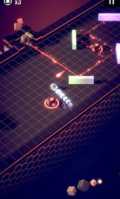 2、充满科幻色彩的场景,小球在前进时还有炫酷的拖尾哦。收集宝石引爆炸弹完成挑战吧;