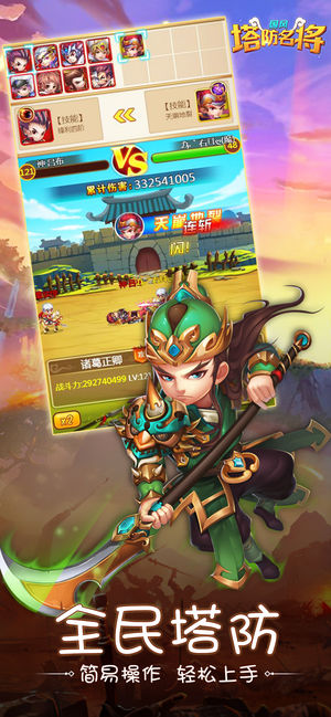塔防名将是一款Q版萌系三国题材策略塔防竞技对战手游,游戏中著名的三国名将让你收集培养,组建最强大的团队在这个混乱的三国世界争霸一方,热血精彩的三国争霸时代等你下载尝试!