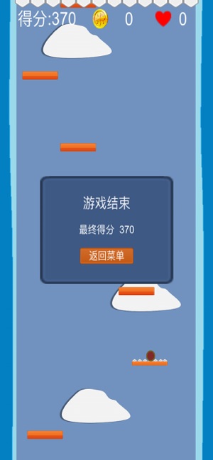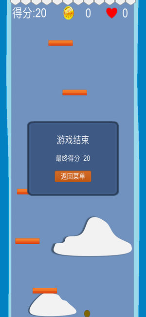2、触顶、掉落、碰带齿的平板都会导致游戏结束。
