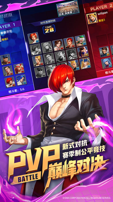 《SNK全明星》是一款由SNK正版授权,高度还原IP元素的即时策略卡牌游戏,游戏收录了《拳皇98》、《侍魂》及《月华剑士》的人物角色,结合原版剧情及人物设定,将玩家快速带入游戏世界,独特的核心战斗、创 新的竞技玩法使游戏区别于传统卡牌游戏,八大流派,二十余个战队,数十格斗家等待玩家收集,为玩家带来新鲜的游戏体验