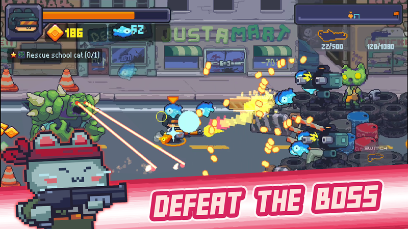 - 收集大量的动力枪,猫咪英雄和支援设备以克服挑战。