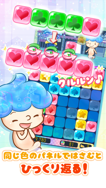 一个轻松可爱的消除游戏!最大的特征是新玩法:翻牌子系统