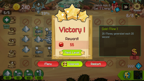 3、合理规划你的阵营,安排不同的士兵去对抗敌人,守护住自己的阵地!